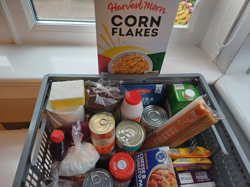 Alongside food, feminine hygiene and oral health products are available and fresh produce will soon be offered in the parcels.